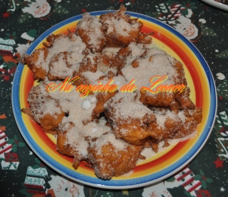 Depois de a massa ter dobrado o volume, deita-se ás colheradas dentro de uma boa porção de óleo a ferver, logo que as filhoses estejam douradas põem-se a escorrer e envolvem-se em açúcar misturado com canela.