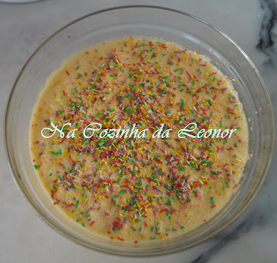 Depois põe-se as gemas, a farinha, o leite, o mel e no fim juntamos as claras em castelo com cuidado.
